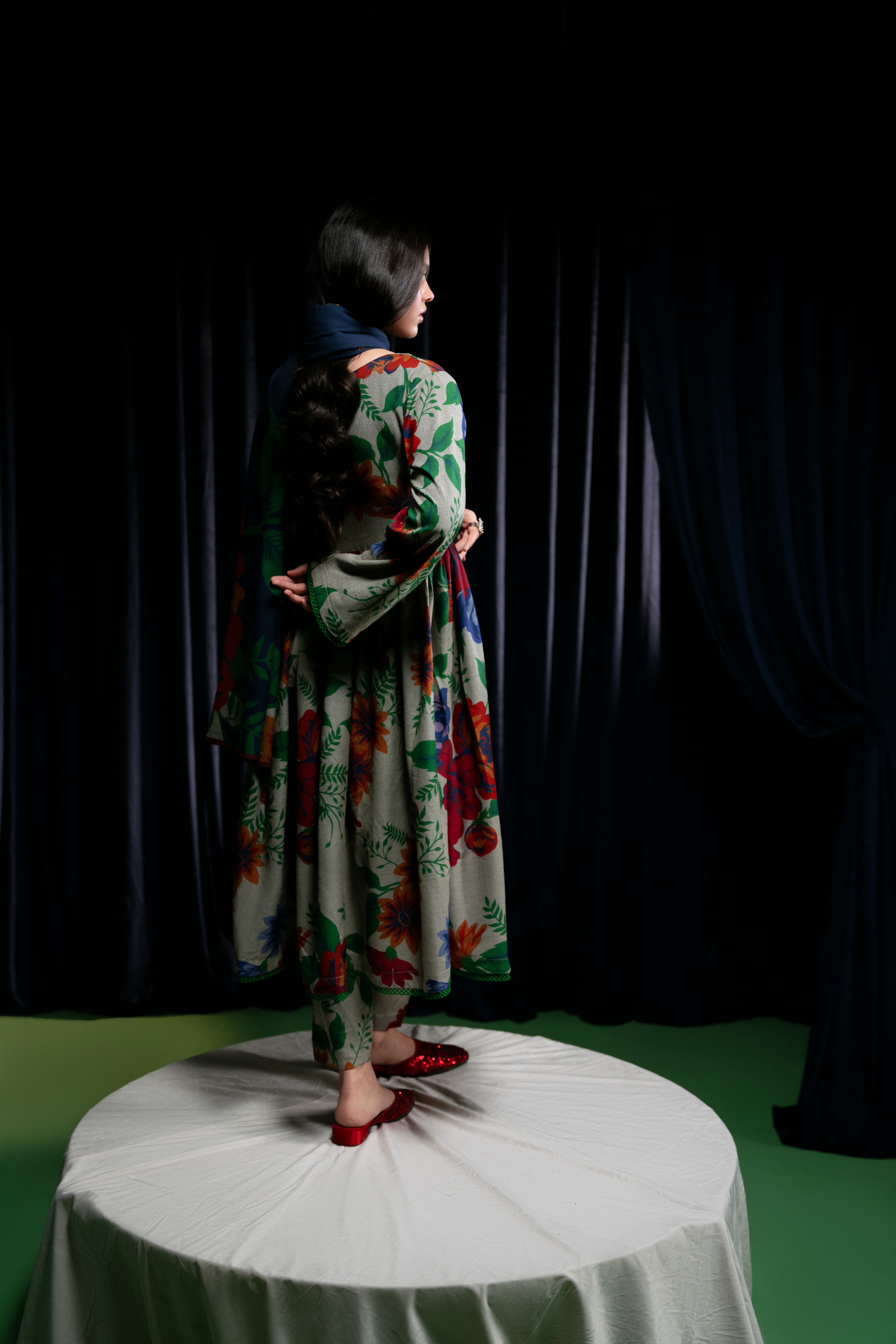 DISCLAIMER: COLORS MIGHT APPEAR SLIGHTLY DIFFERENT DUE TO THE PHOTOGRAPHIC/LIGHTING EQUIPMENT USED. SOME ACCESSORIES/EMBELLISHMENTS USED ARE ONLY FOR SHOOT PURPOSES AND NOT PART OF THE ACTUAL SUIT.