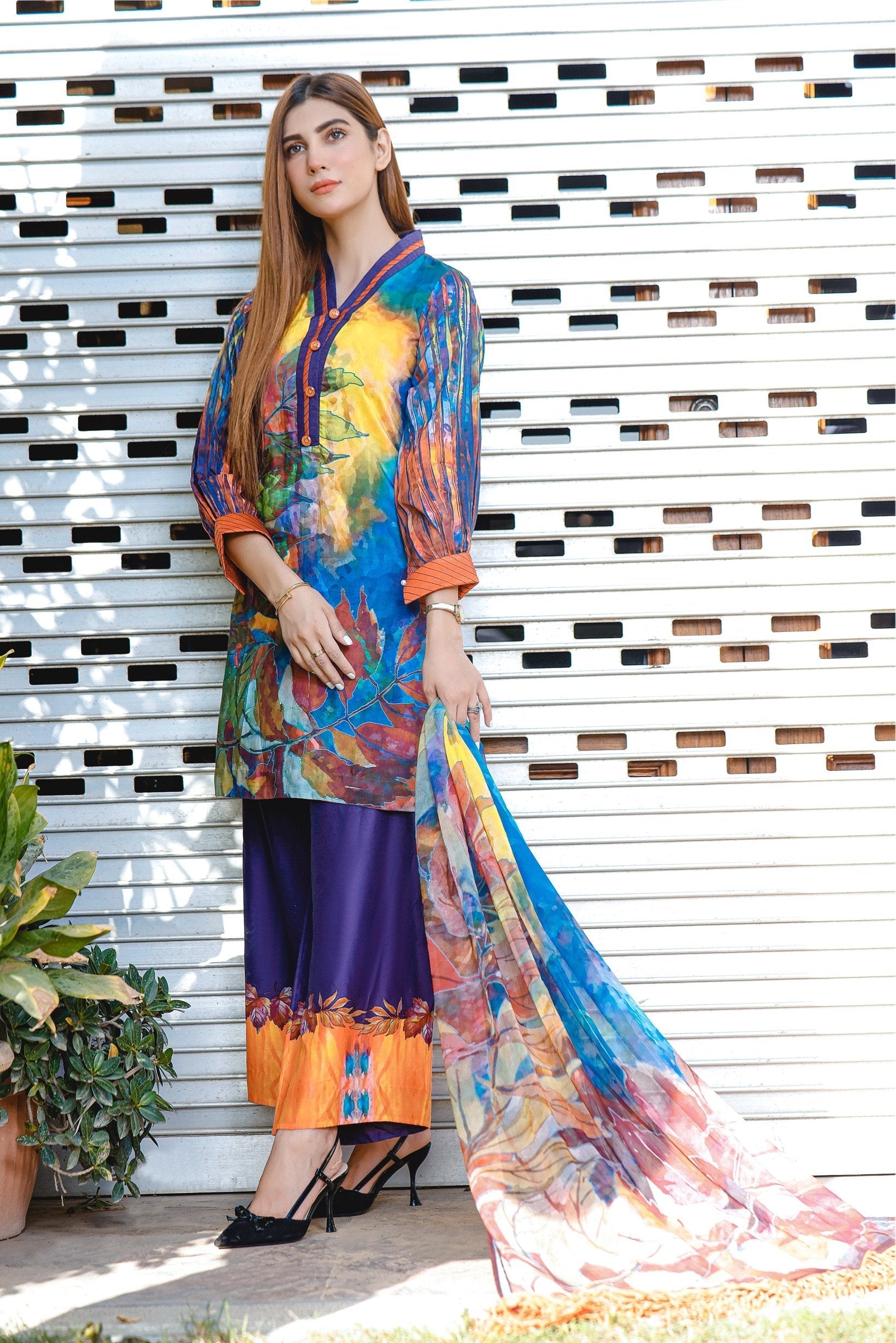 Experience Exquisitely (Unstitched) Digital Printed 3pc Lawn Dress With Digital Printed Chiffon Dupatta & Digital Printed Trouser.
