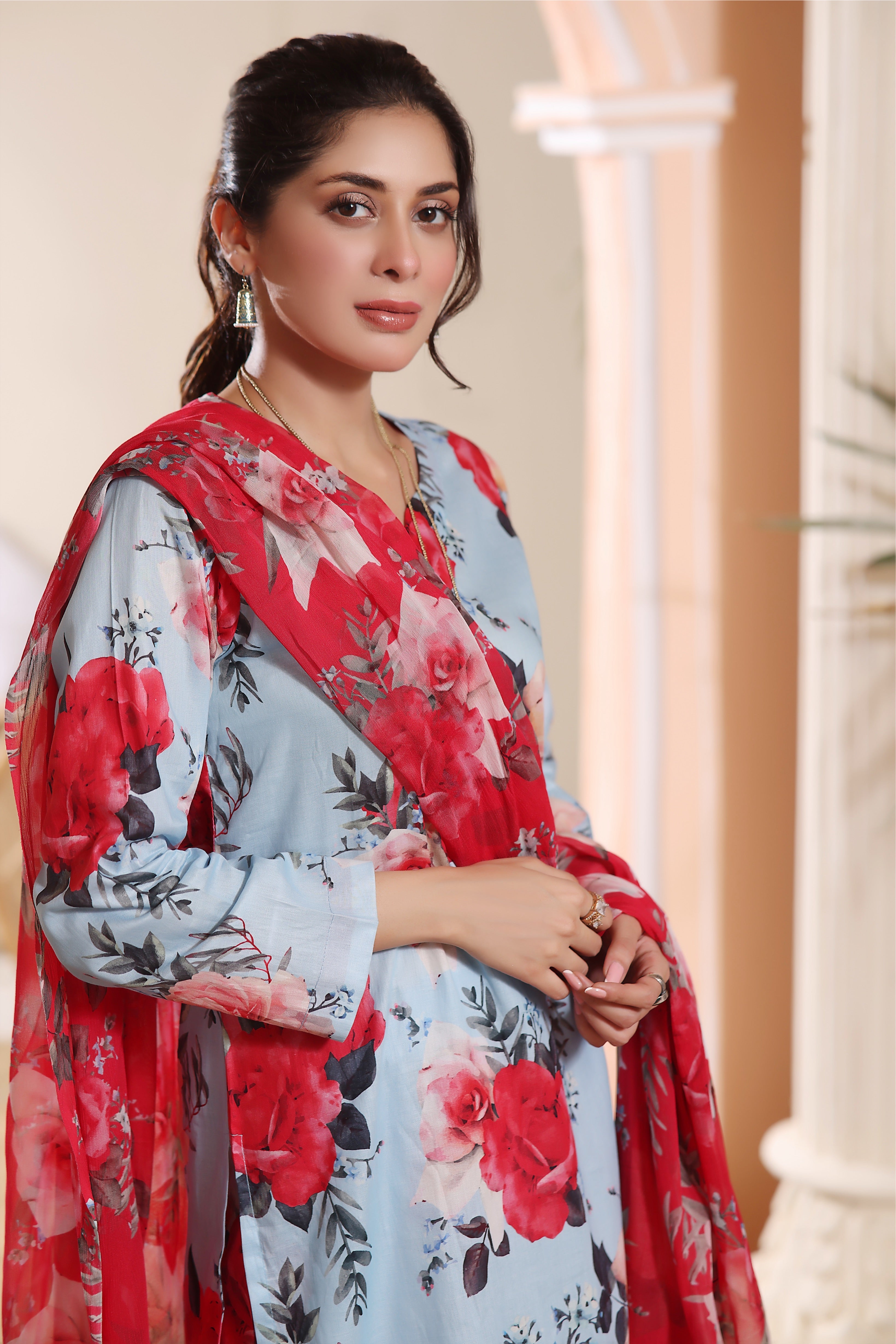 DISCLAIMER: COLORS MIGHT APPEAR SLIGHTLY DIFFERENT DUE TO THE PHOTOGRAPHIC/LIGHTING EQUIPMENT USED. SOME ACCESSORIES/EMBELLISHMENTS USED ARE ONLY FOR SHOOT PURPOSES AND NOT PART OF THE ACTUAL SUIT.
